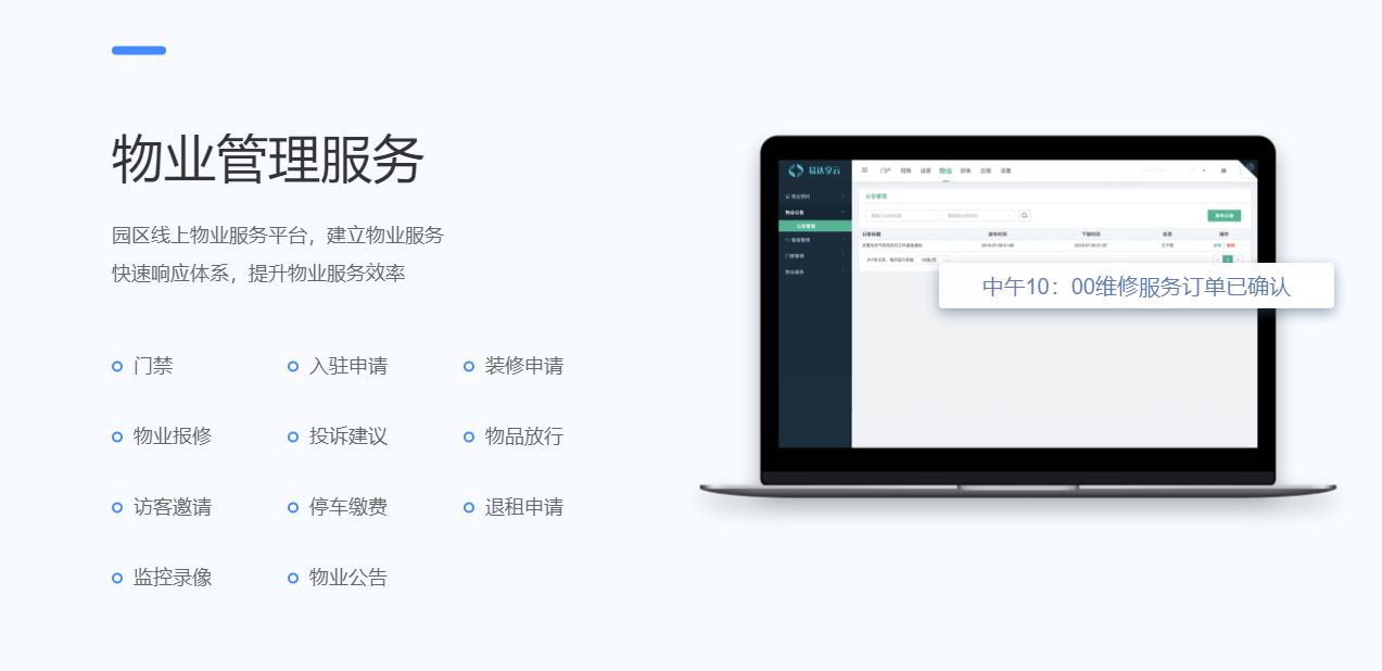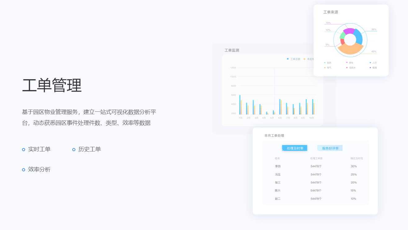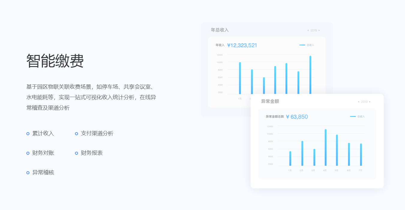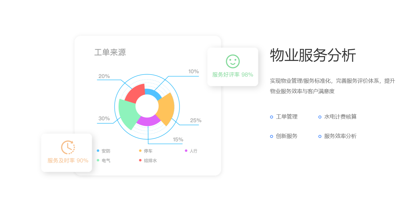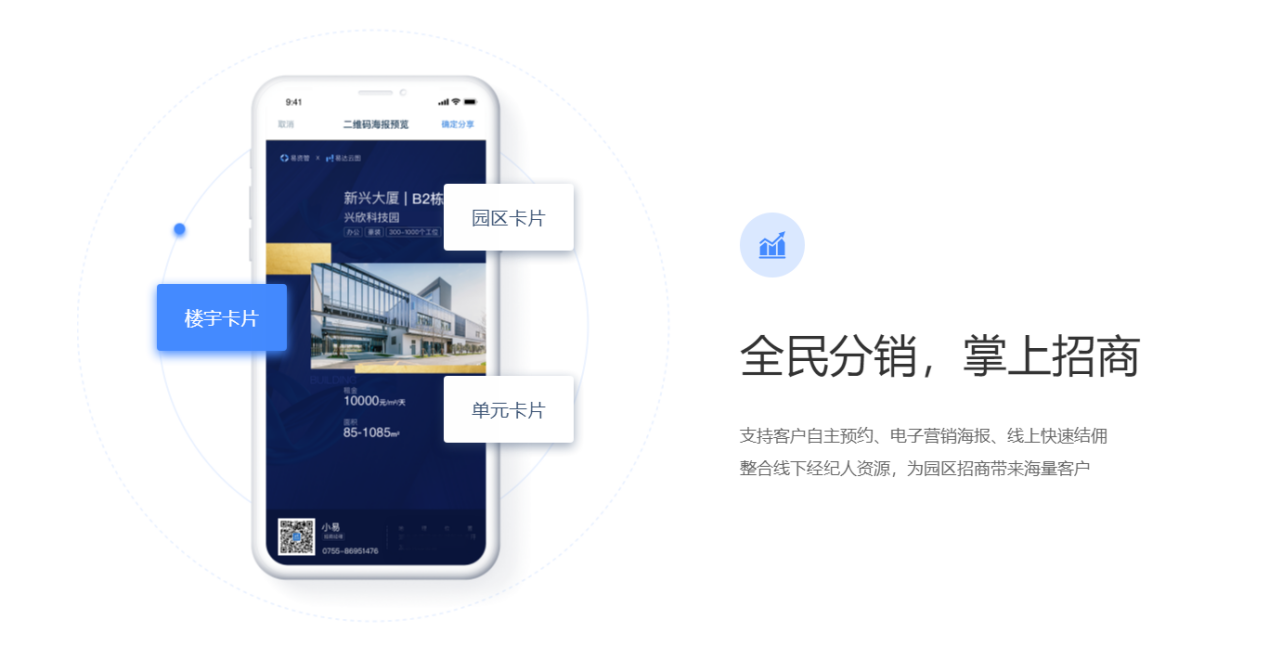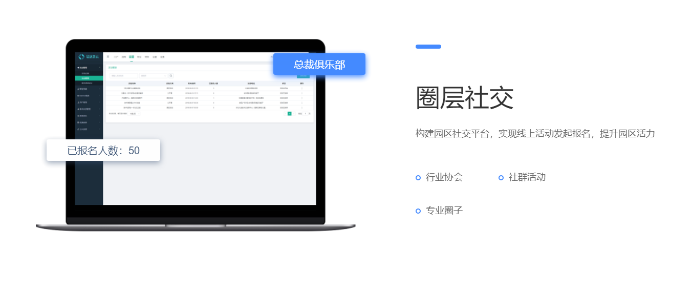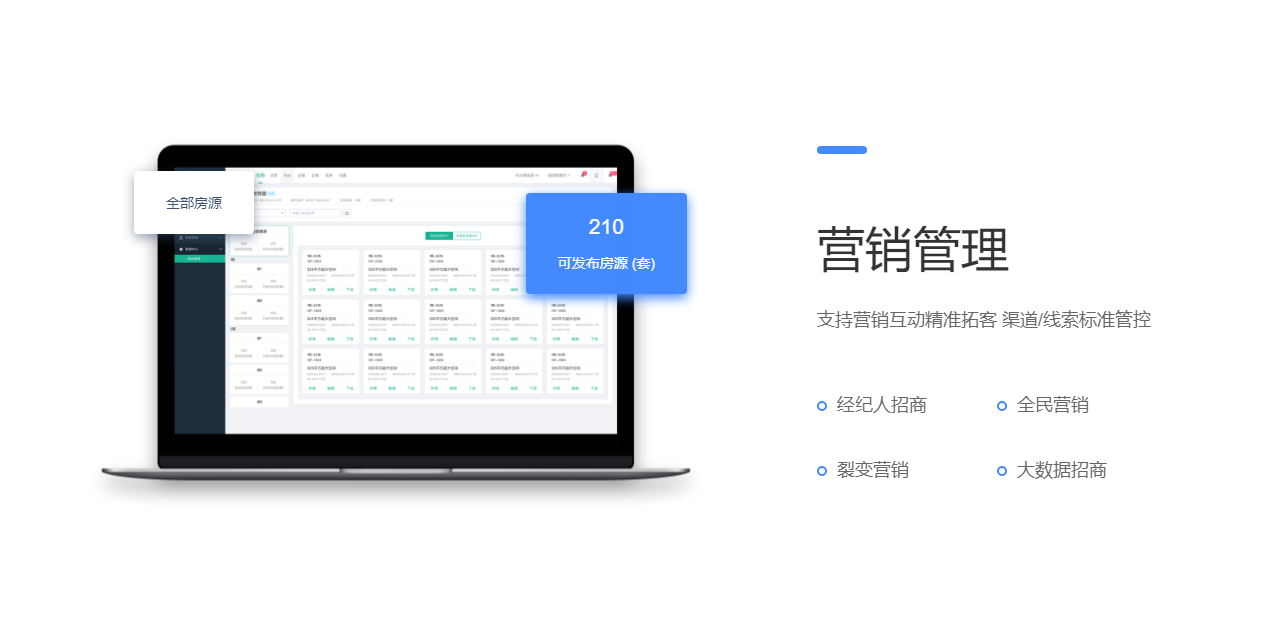 围绕产业客户招、租、管、退四个阶段,实现产业空间招商、租赁的核心业务管理闭环。基于大数据分析与物联网技术,帮助园区构建集楼宇资源管理、客户管理、合约管理、财务管理为一体的园区管控体系,有效解决园区运营痛点,提升园区运营管理效率与园区综合竞争力。