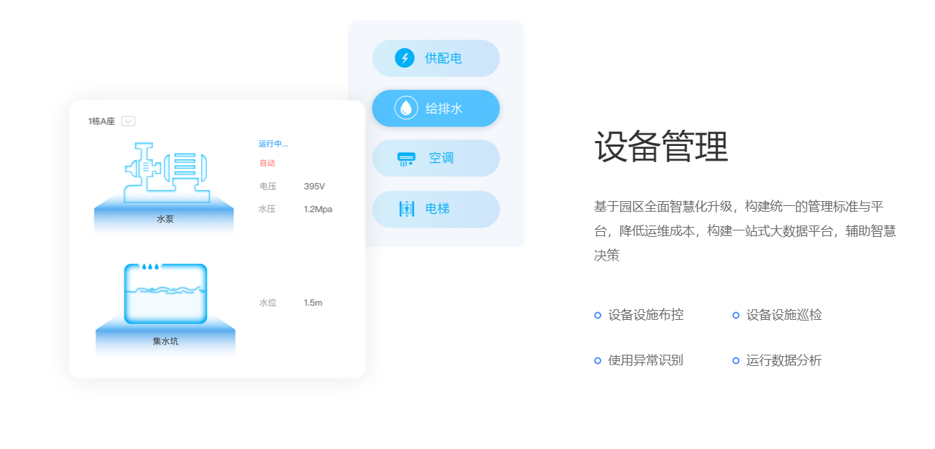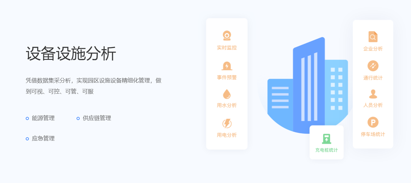 面对产业园区物联网建设“无规划,缺管理,无数据,高成本”等一系列问题,运用云计算,大数据,物联网等技术工具,实现园区设备设施接入、集成、联网及可视化智能分析,构建从咨询规划到设计集成的全生命周期服务体系。